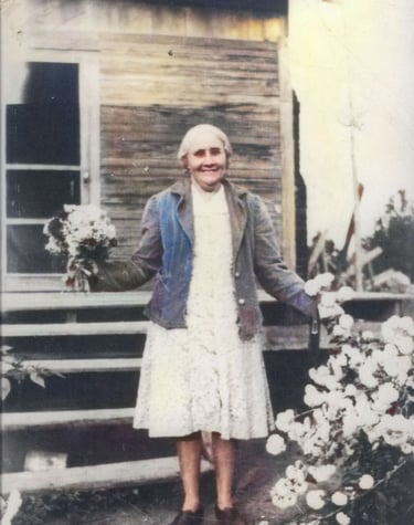I learned from my Paternal Grandmother that her Mother, my Great Grandmother who I never met, Florence Ella Hubbard (1885 - 1960) was an avid grower and lover of roses. This is a colorized photo of her showing her proud bounty of beautiful blooms.