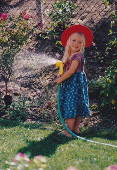 My love of roses started with my beautiful Mom, Peggy Nash (Stevenson) Pollock. She grew roses in a prime section of our garden that overlooks a canyon in Carlsbad, California. It had optimal sunshine and ventilation and the roses were always gorgeous. As children, my sister and I were encouraged to help care for them with simple tasks like watering and pulling weeds until we saw an earth worm and ran screaming into the house.