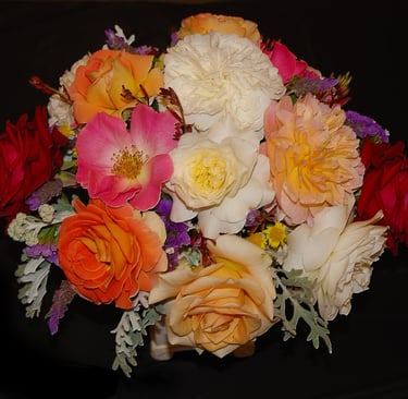 Conundrum - The conundrum has been solved….we have a winner. Not disease resistant but a religious spray program keeps problems at bay. Fabulous form, brilliant golden yellow with ruby edges that seem to illuminate from within. One of our top three favorites. Conundrum is fun and flirty – demands attention and the tables are doing all the talking.